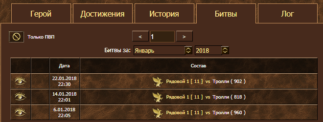 3) Мульт игрока http://www.heroesland.com/hero.php?h=shliapa. Тут по образу и подобию. Достаточно рассмотреть бои других его героев (http://www.heroesland.com/hero.php?h=%F ... %EE%E9%203, http://www.heroesland.com/hero.php?h=%F ... %EE%E9%202, http://www.heroesland.com/hero.php?h=рядовой%201, http://www.heroesland.com/hero.php?h=рядовой%204) и сравнить.