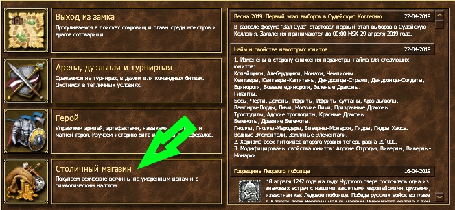 Столичный магазин - это место где вы можете обзавестись необходимым для вас вещами(оружием,одеждой,аксессуарами,свитками и т.д.) с налогом в размере 20% от стоимости товара.