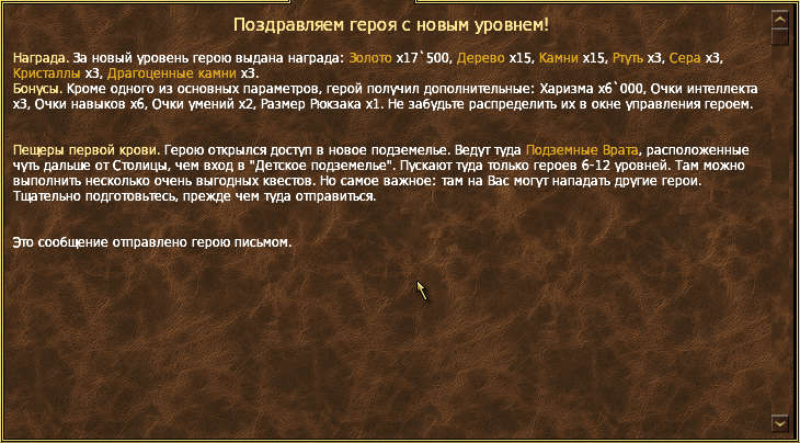 Уважаемый Дрк! В сообщении, поздравляющем игрока с получением 6 уровня, сказано, что в ППК пускают только героев 6-12 уровней, в то время как фактически туда пускают героев 6-13 уровней. Ошибка присутствует как в сообщении, которое мы видим в окне итогов битвы на вкладке "новый уровень", так и в том, которое получаем на почту героя при улучшении.