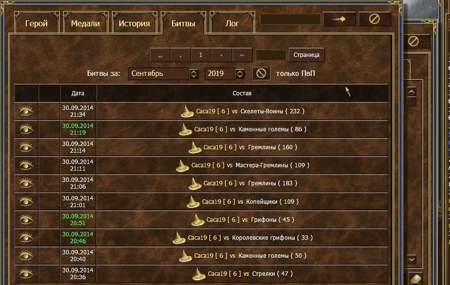 Просмотр истории боев