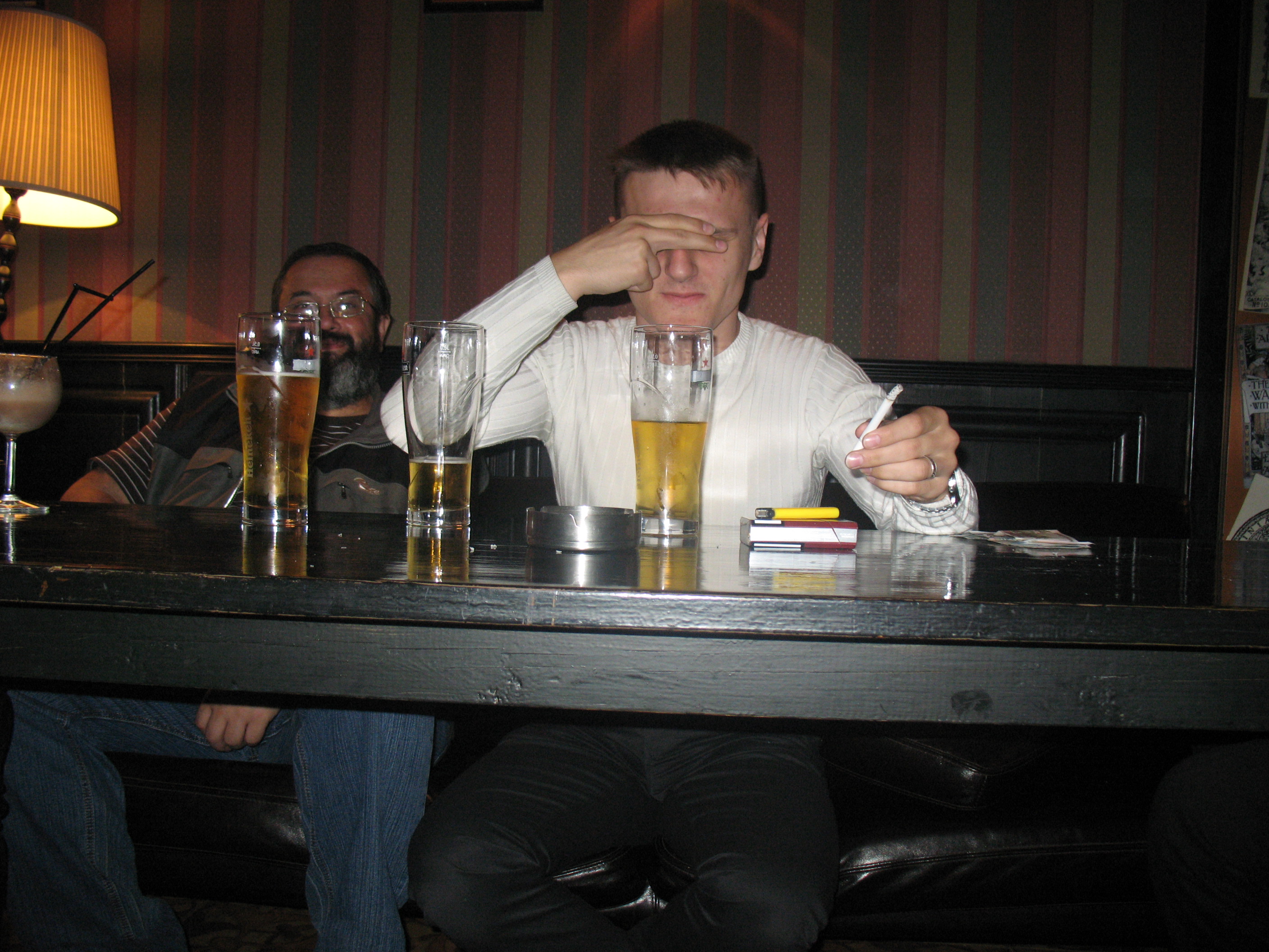 Свершилось!!!Игроки из Санкт-Петербурга, в составе 10(ДЕСЯТИ!!!)человек, в том числе двух очаровательных дам, собрались в центре города и направились в обитель сладких разговоров и холодного пива, а в простонародье -в бар. Посидев чуууть-чуть в КиллФише и понастольгировав о Героях 3 мы поняли, что нам нужно пиво, мноооого пива.