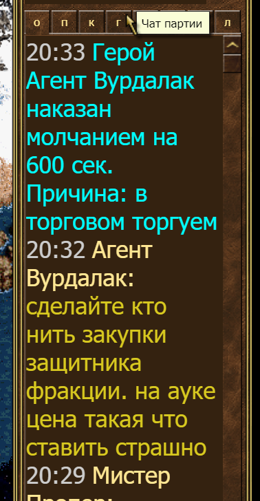на бан тянут нарушение правил, связанных с чатом, в торговом торгуют вот я и предлагаю свою цену как вы в общем чате 500 золота за Защитник фракции