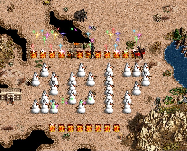 Тут откуда-то появляется всадник и непонимающе смотрит на ледяную армию. А потом радостно хлопает себя по лбу - Новый год же, Семен Семеныч! И тыкает рядом со снеговиком салют. И фейерверк! А потом еще один и второй и третий!
