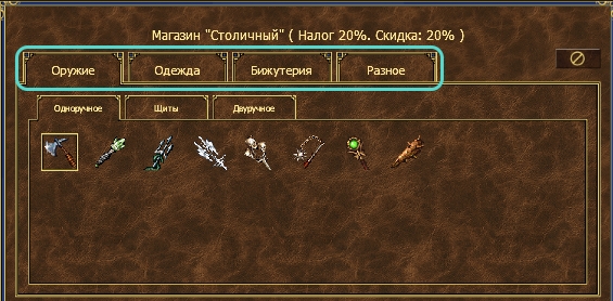 Столичный магазин - это место где вы можете обзавестись необходимым для вас вещами(оружием,одеждой,аксессуарами,свитками и т.д.) с налогом в размере 20% от стоимости товара.