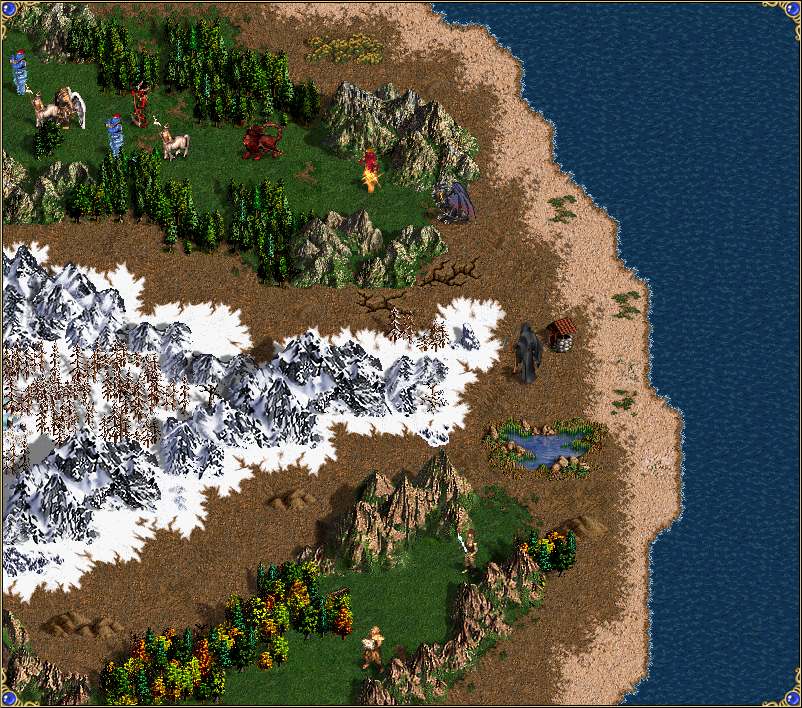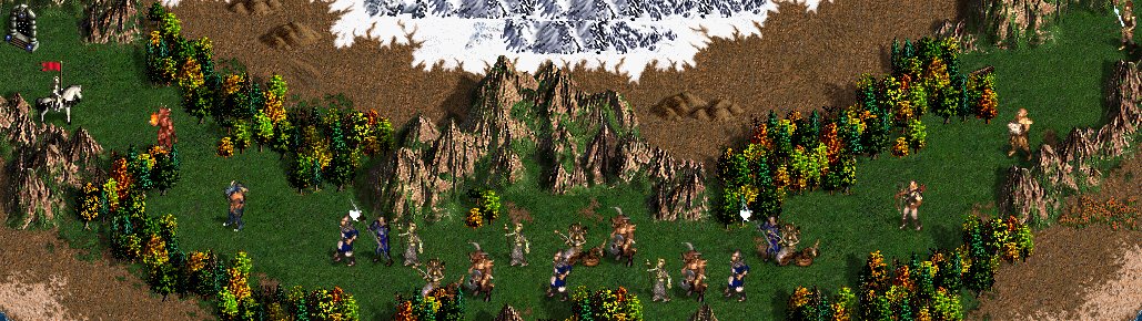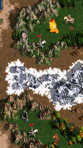 Герои появляются у колодца в восточной части острова. Отсюда можно пойти по двум путям, состоящим из 19 динамических отрядов монстров, в конце которых находятся вольный Рыцарь и портал выхода. Первые 3 и последние 2 отряда монстров находятся на расстоянии от остальных монстров, в цепочке монстров между ними отряды стоят вплотную, так что каждый последующий бой начнётся сразу же после завершения предыдущего. Верхний путь состоит преимущественно из быстрых монстров ближнего боя. Нижний путь состоит преимущественно из стрелков.