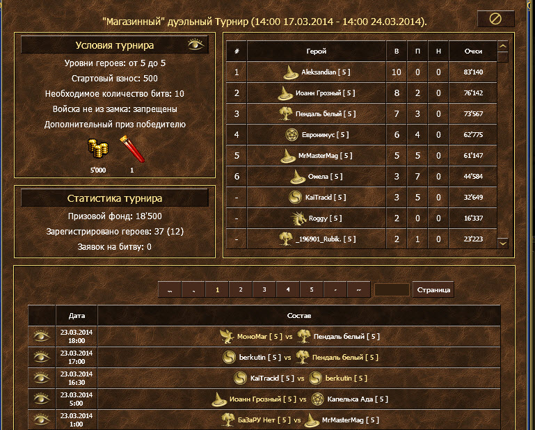 Чтобы принять участие в турнире герой должен находится в замке, зайти в раздел «Арена, дуэльная и турнирная выбрать вкладку «Турниры». Выбрать «Магазинный» дуэльный турнир.