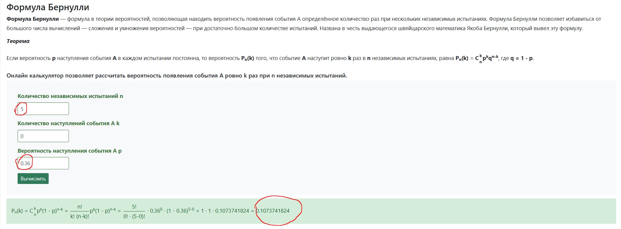 Когда по теории вероятности 36%