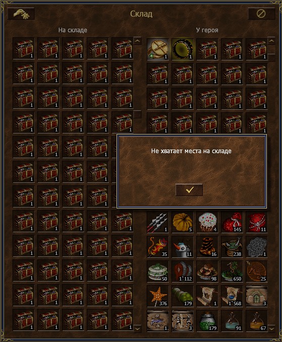 Сделать мешок было бы логичнее я думаю, просто сделать возможность кинуть 20 к примеру не очень идея. Могут ведь не купить и тогда сгорят сундучки если инвентарь забит.Темный Лорд писал(а): ↑20 авг 2023, 14:25виделVeiden писал(а): ↑20 авг 2023, 13:56Ответ написан в моём первом сообщении.Темный Лорд писал(а): ↑20 авг 2023, 12:56мне больше интересно зачем Вейден их на склад кидает, потом со склада, потом на склад...
