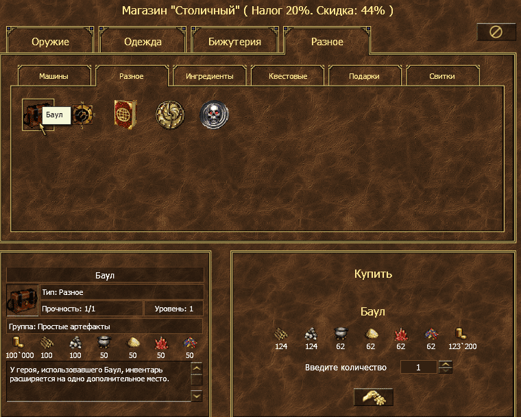 У некоторых артефактов изначально есть персональный налог на продажу в магазинах.