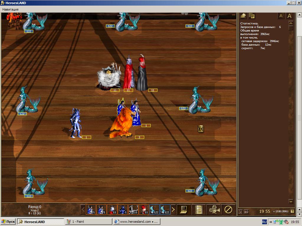 из рис. 2 тот же бой - только просмотр. Тормоза такиеже как и при бое. Видно как каст чародея проигрывается не на все войска а по 1.